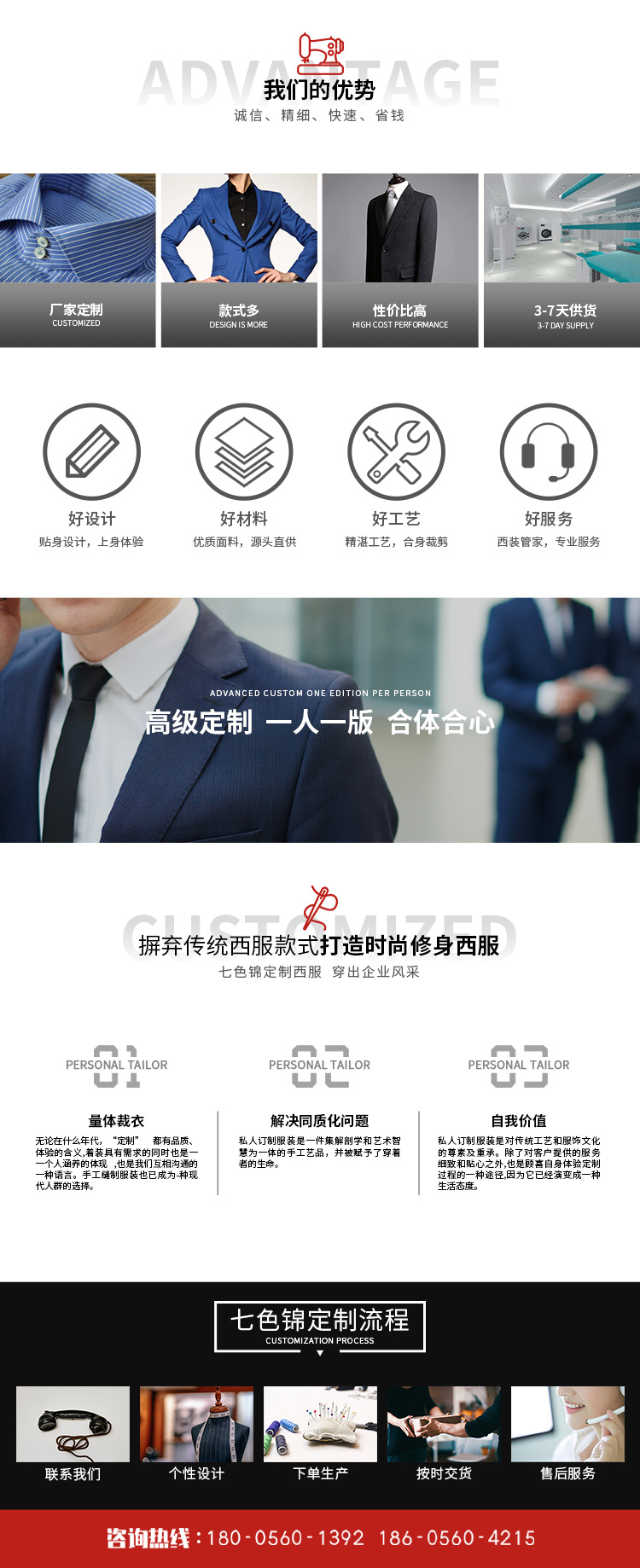 安徽七色錦服飾有限公司成立于2011年07月19日,公司位于安徽省合肥市包河工業區延安路17號,廠房面積約5000平方米,投資資金1000萬元。作為一家集服裝設計,生產,服務于一體的中、檔次高的西裝、襯衫企業,服務專業、顧客滿意”的經營宗旨、以“客戶為先、市場導向”為經營理念更好的服務于廣大消費者、依靠高超的技術,先進的設備,嚴格的管理,穩定的產品質量,精細的制作工藝,周到的客戶服務贏取了廣消費者的信賴和好評.各類服裝服飾專業技術人員100多人,各類先進的生產設備150多臺,具有設計、制造各類服裝服飾的能力。公司是以從事中、檔次高的西服、襯衫、西褲、西裙、大衣、領帶、皮鞋等設計、生產、銷售一體化為主,為證券、單位、團體、酒店、學校等企事業單位定制專業的服飾公司并通過了ISO19001:2015質量體系認證、ISO14001:2015環境體系認證、OHSAS18001:2007職業健康安全管理體系等認證...